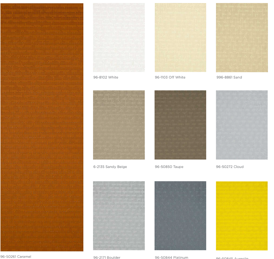 The fabric’s micro-perforations allow air to circulate. This avoids the greenhouse effect usually felt beneath a standard acrylic fabric.The fabric’s unique design and its enduring, plain colours bring a touch of modernity to your terrace or patio.The fabric’s open nature allows light into your house. You’ll enjoy natural light as well as a glare-free outwardvisibility.The colours’ high UV resistance guarantees your fabric’s long-term aesthetics. Its smooth surface resists dirt, mould and facilitates cleaning.